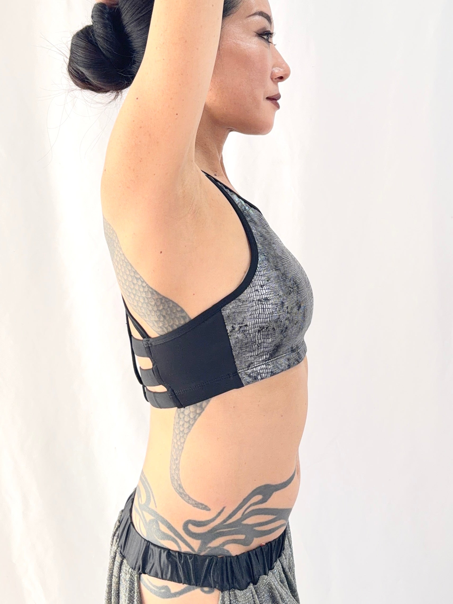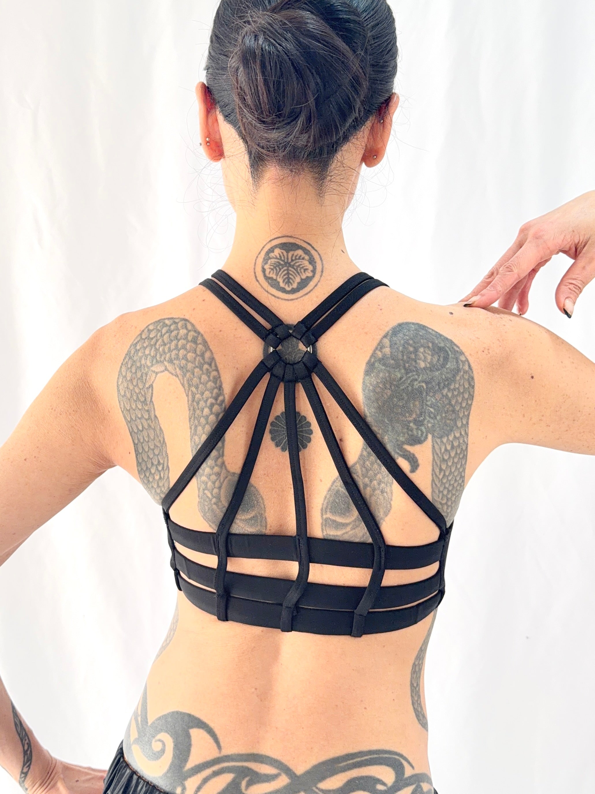 バックスタイルは、目を惹くSpider Web(蜘蛛の巣)デザイン。